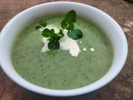 An evergreen plant growing abundantly in small shallow streams. Watercress needs clear water streams that are unpolluted. Watercress has a bitter peppery strong flavour and dark green and crisp. It has significant source of iron, calcium and a high source of vitamins C and K. With very little effort you can add the stems and leaves to salads or make a wholesome soup that’s the most amazing green colour.