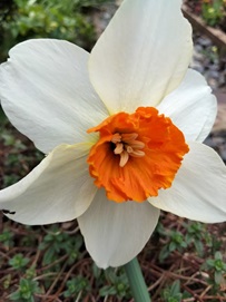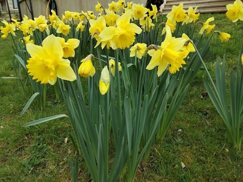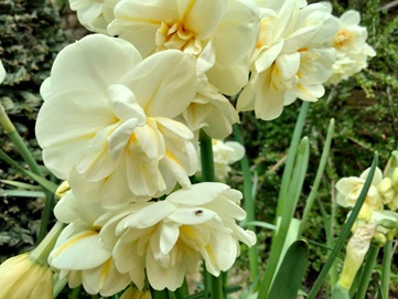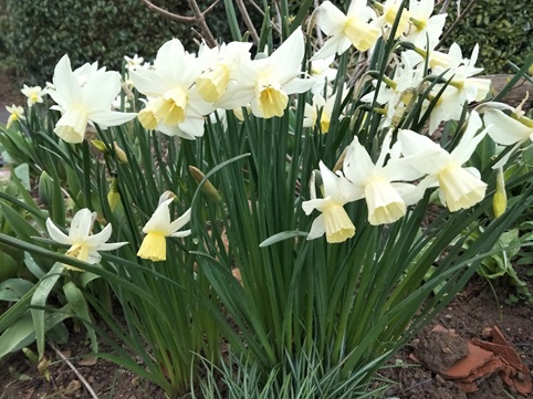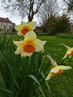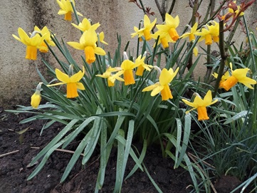 March is predominantly when our large Daffodils start flowering, their large golden heads following the sun as it tracks across the sky from dawn till dusk. Many are yellow bit quite a lot are bicolored so that they are yellows, whites and oranges. In single, semi and double flowers. The double and multiheaded Daffodils usually flower later and are often scented.