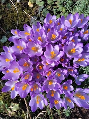 A great small Crocus for naturalizing among snowdrops or even just in the lawn. It has lovely lavender-coloured flowers with cheery orange stamens in the center. Also comes in a dark purple form with the same stamens.