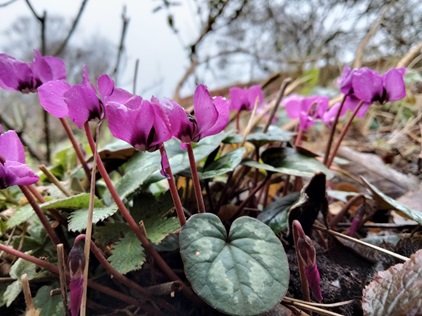 A most wonderful bulb flowering from early December right the way through to March. It has small kidney shaped leaves that are dark green or pewter (silvering of the leaves). The flowers are dark pink/red, pale pink or white. Super hardy for such a dainty plant and is a joyous plant to be with snowdrops.