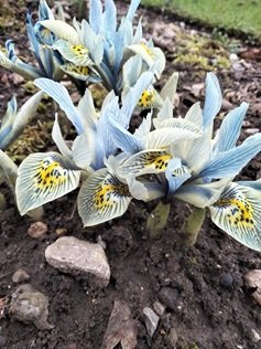 This early flowering bulbous Iris produces large iris flowers from early as January right through February and are often found flowering with snowdrops. These bulbs produce flowers from white to rich blues and purple. Even some are yellow. A lovely variety and naturalizes quickly is Iris Reticulata Kathrine Hodgkins. But there are many others of this versatile little bulb.