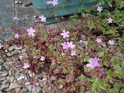 Such examples of these types of annuals are; – Fat hen grows tall with edible leaves, goose grass (cleavers) or even sticky weed. Green climbing growth with small green flowers. The seed has little barbs on them and are dispersed clinging to fur or garden gloves and clothing, red dead nettle can be regarded as quite pretty small (5-8”) round little plants with pink flowers, herb Robert of the geranium family, pink or white flowers, seed is catapulted, chickweed, small stary flowers and again explosive seed capsules. Overwinters as a green plant, etc