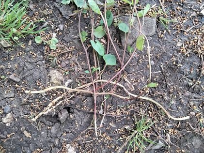 To note, Bindweed is a Victorian escaped introduction. Bindweed makes a pencil thick white root and is easily identified in the soil. I have found with experience that the roots can go down at least a foot in most soils. It also produces a white funnel shaped flower and will quite happily grow from seed too. Couch grass, quite a shallow rooted plant. It spreads primarily on an adapted creeping stem and enchanter’s nightshade, mostly a woodland plant, has thin white brittle roots and seeds that are barbed and clings to clothing and fur. Ground elder was introduced by the romans as a vegetable and is a naturalized plant as opposed to a native plant. (eat roots and leaves) spreads by seed but primarily on creeping that fill the soil only a few inches down in a mat of roots. I once spent a whole winter digging this out of someone’s garden. Only to find they went off to a plant fair and very proudly brought back three pots of the variegated version of ground elder!
