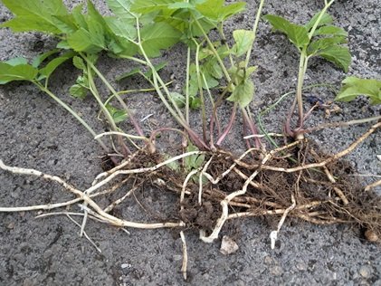 I find that perennial weeds have two main growing types, firstly producing a tap root like with dandelion, produces long tap roots and large green rosette of leaves with many golden yellow flowers, seed produced in what we call a clock. Dock, even longer tap roots once established. Cinquefoil, also produces vegetatively a bit like a strawberry runner, and fibrous rooted like creeping buttercup, which like cinquefoil produces strawberry runners, avens, has a small yellow flower and hook like seeds that snag in to clothing and the fur on your animals.