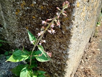 There are a few quite common grasses. The most common is probably annual meadow grass. A plant growing to 4/5 inches with flowers. Often in lawns but will grow just about anywhere. I don’t personally think it’s that annual! The next is a form of Bromus (sorry no common name) I was introduced to this as herringbone grass as this is what the seed heads resemble. But I’m sure it’s not called this. Grows from seed, flowers and disperses in the same season. Grows up to a foot and will grow in our gardens as well as any waste areas. The next grass is known by many names but the best one I like is angels fishing rod grass. A large grass (sedge – a type of rush) clump with tall arching flower heads in June. It seeds prolifically. Easy to remove when young and is an evergreen grass.