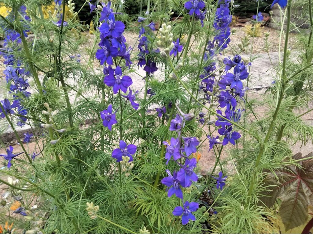 One of the most iconic plants of the herbaceous borders or annual beds are the delphiniums. Larkspur and delphinium are essentially the same flower. “Larkspur” is the common name for the genus Delphinium, which includes both annual and perennial varieties. While delphiniums are generally perennials, the annual varieties are often referred to as larkspurs. Delphiniums belong to Ranunculaceae, the buttercup family