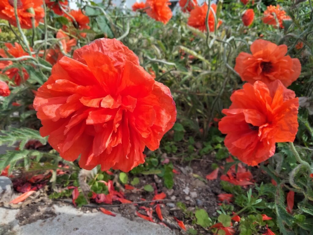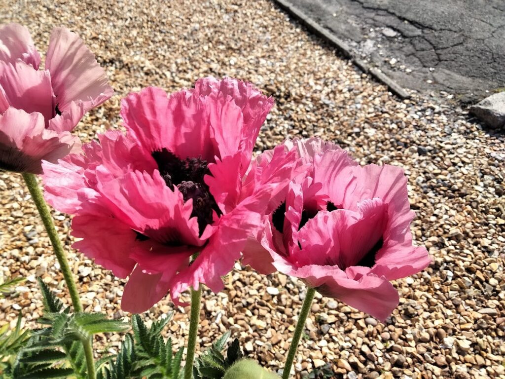 Once the flowers emerge opened, they can range depending on variety from white through to pink, oranges and shades of red. With the single varieties they often a large deep purple spot that can be found at the base of the petals. Most are single and have just five large papery petals. Flowers can be up to 20cms across. When growing in the garden these flowers should grow through a plant support.