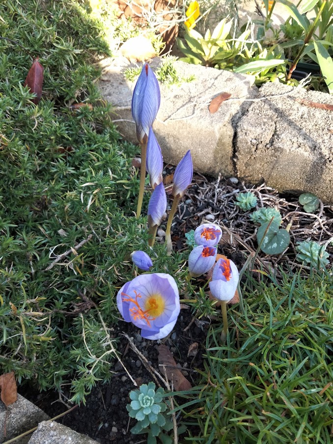 Its also worth mentioning saffron (Crocus Sativus). This short large flowered purple Crocus is a beauty. It also has large orange anthers, which can be collected and used as saffron. Traditionally grown in places like Saffron Walden UK (hence the name). They need well drained fertile south facing places to grow. From experience I have noticed that the bulbs are very large when you get them and they do flower beautifully and collect a nice a amount of saffron, but I find the bulbs degrade after flowering. It can take a few years to get them to flower again.